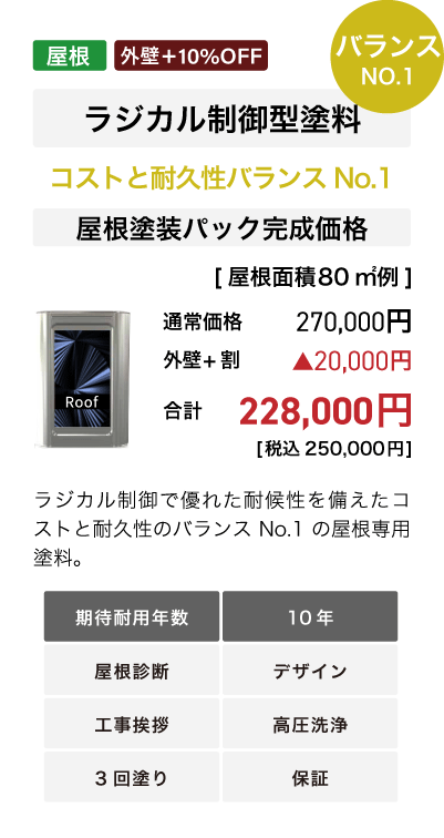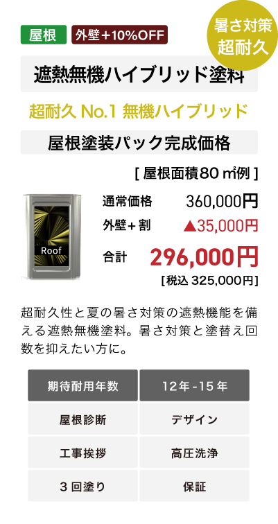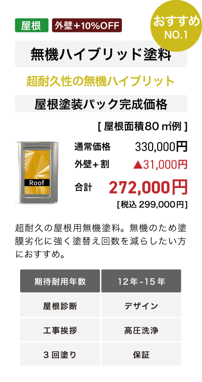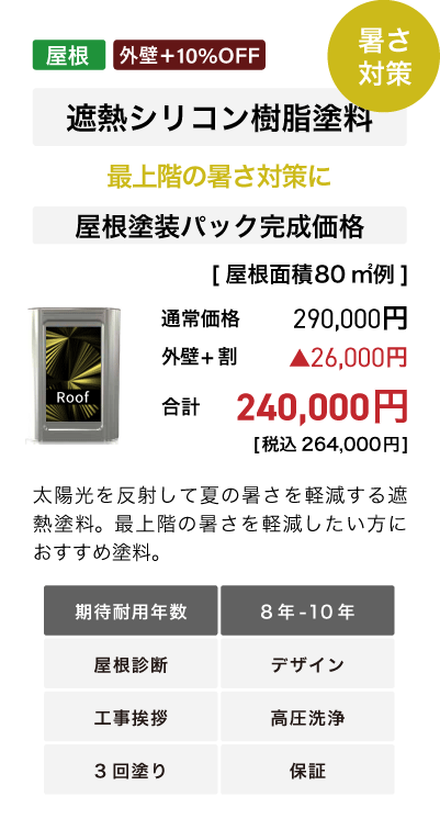 ■外壁塗装+屋根塗装で外壁塗装パック10%Off+屋根塗装10%Off。